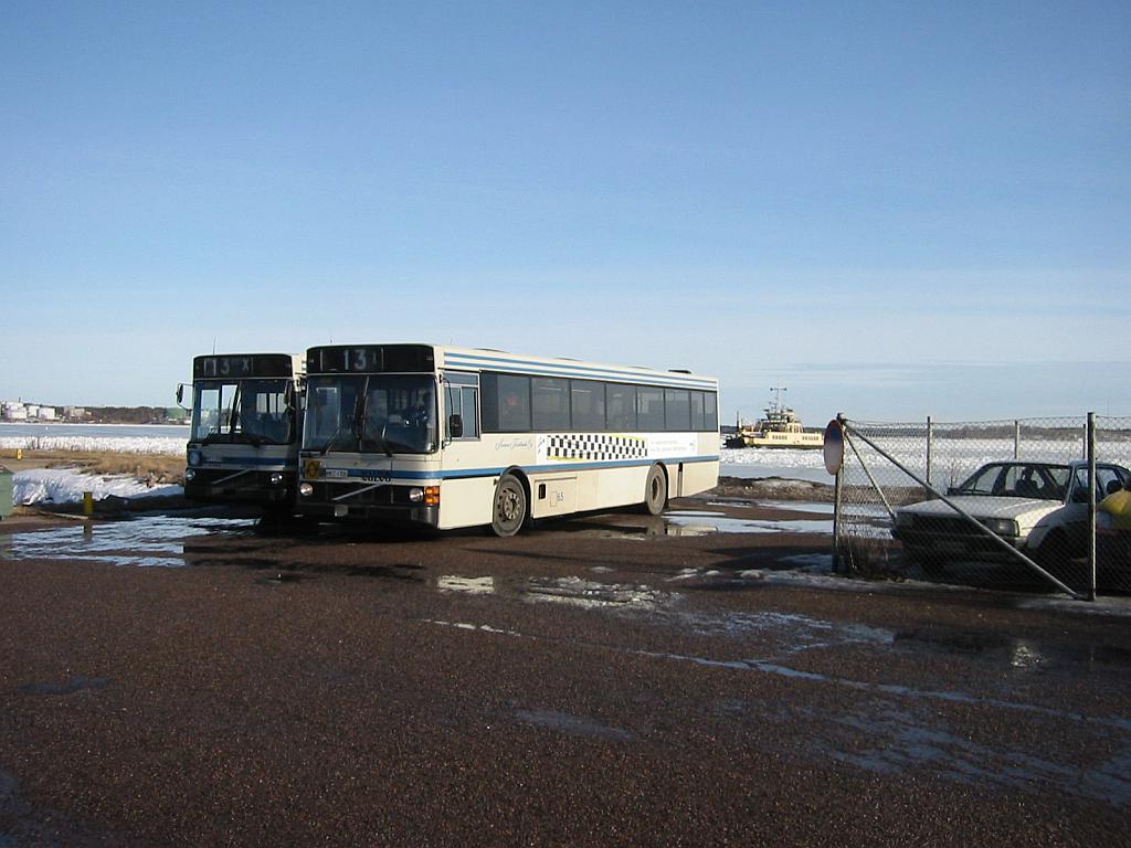 Niksu, 1.6.2003 Päivä Tallinnassa -kuvaraporttiKävimme huhtikuussa Tallinnassa tutustumassa paikalliseen paikallisliikenteeseen. Kuvia Tallinnan busseista, trollikoista, ratikoista ja junasta löytyy Päivä Tallinnassa -kuvasivulta. Niksu, 24.5.2003 KuvapäivityksiäNäemmä edellisen päivityskierroksen osittain epäonnistuttua, nyt onkin sitten runsaampi satsi kuvia saatavilla. On Wiima M310 (WL) ja 311 (Connex) -kuvia, Lentoparkin O405N-Mersu, Connexin Scala, Concordian City L, HKL:n ja Connexin City M:t, Concordian teli-Ikarus ja laatikko-Wiimat HKL:ltä ja Concordialta. Varmaan voisi mainita myös Pohjolan Liikenteen erikoisista autoista. Entinen Connex 200 (Volvo 8700LE) ajelee vanhoissa väreissä ilman logoja PL:n linjoilla Espoo 42(A) ja 205, ilmeisesti laina-autona Volvolta. PL:n oma on sensijaan uusi Lahti Scala, jota sisäänajetaan pääkaupunkiseudulla ennen siirtämistä Kotkaan. Tämäkin on löydettävissä linjalta Espoo 42. Jos vain suinkin jaksamme, lähiaikoina (suhteellinen käsite) on luvassa kuvakoosteita Tallinnasta ja toiselta Tukholman reissulta. Niksu, 4.5.2003 Päivitystä Lahti-sivuilleLisäilin kuvia Lahti 402 ja Scala -kuvasivuille ja karsin samalla huonoimpia pois. Erikoisuutena MB-alustainen Lahti 402, Lentoparkin väreissä. Niksu, 21.4.2003 Hieman päivityksiäPäivittelin vähän yhtiöittäisen kalustolistan ja muutaman bussiesittelyn tilaa. Uusia kuvia mm. HKL:n ensimmäisestä City U:sta, Connexin ja Westendin Linjan Scaloista ja Etelä-Suomen Linjaliikenteen Säfflestä. Niksu, 18.3.2003 Katjanokalta Lasipalatsille poikkeuslinjalla 13X
