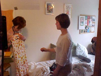 “Fortuna suosi meitä myös toisessa suhteessa: vanha mekkoni, jota pari viikkoa sitten käytimme kuvauksissa, sopi naispääosan ylle kuin valettu, vaikka sitä silloin aikaisemmin ei tajuttu sovittaa lainkaan! Sama vaatekappale ei mene esimerkiksi minun ylleni yrittämälläkään. Niin ne mitat kasvavat vuosien varrella, huokaus."