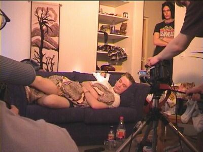 Vaikka kuvauspaikat olivatkin käytössämme lähes avaimet käteen -hengessä, oli siellä täällä aina vähän viriteltävää. Yksinäisen miehen herääminen oli muuton jälkeen yksi työläimmistä miljöistä. Yhteen huoneeseen piti saada näyttelijän ohella mahtumaan valaistus, äänittäjä, ohjaaja, kuvaaja ja kamera-ajo. Onneksi tässä ei ollut monimutkaista koreografiaa!