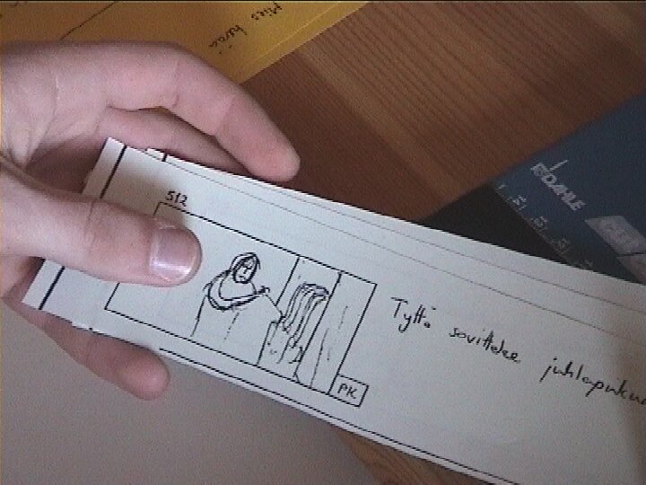 Kuvakäsikirjoitus skannattiin, tulostettiin ja leikattiin.