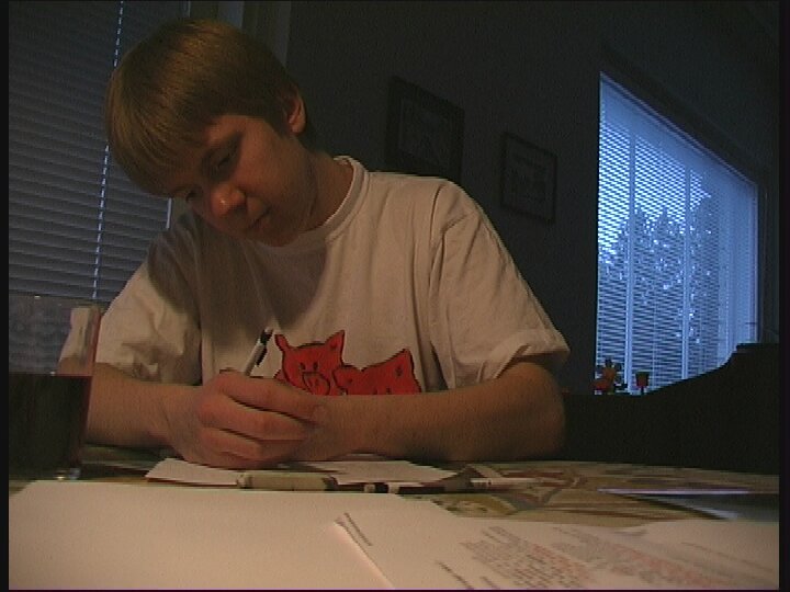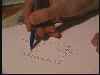 Tosimies piirtää lyijytäytekynällä.