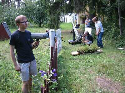Late äänittää aidantolppaa. Samaan aikaan toisaalla Marcus on kantanut kuvaan etualan. Ja vähän multaa siinä sivussa.