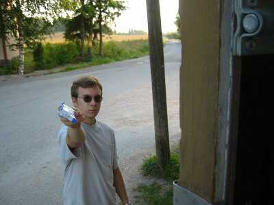 Olgan piti syödä kuvassa jäätelöä. Lämpimänä kesäiltana oli eduksi, että fiksut pojat keksivät hankkia a) kylmälaukun ja b) monta jäätelöä. Niksu ojentaa seuraavaa.