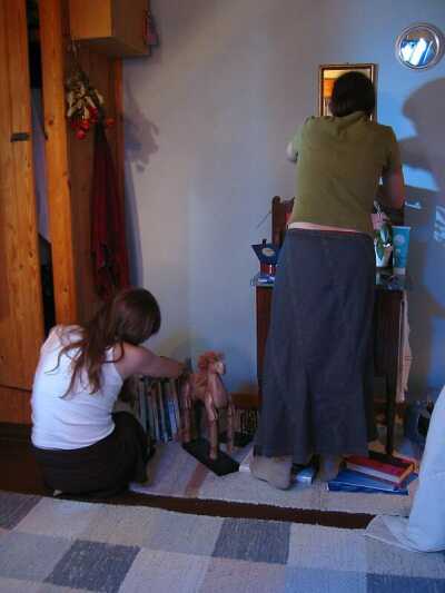 Anni otti Liisan avuksi sisustamaan Tiinan huonetta. Feministit seis! Tytöt vaan tietää nää jutut paremmin.