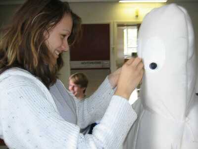 Liisan valmistama Skotti-nuken näköispuku sai ensi-esiintymisensä Kiljavalla. Puvun sisällä ei ole hiiri vaan Liisa itse.